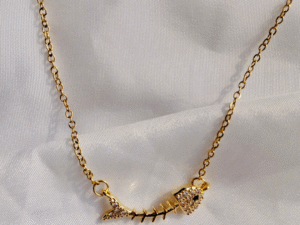 Dive into elegance with the Aqua Bones Necklace from Glonara Studios. Inspired by the sleek beauty of ocean life, this stylish fish-skeleton pendant is designed to make a bold yet graceful statement.