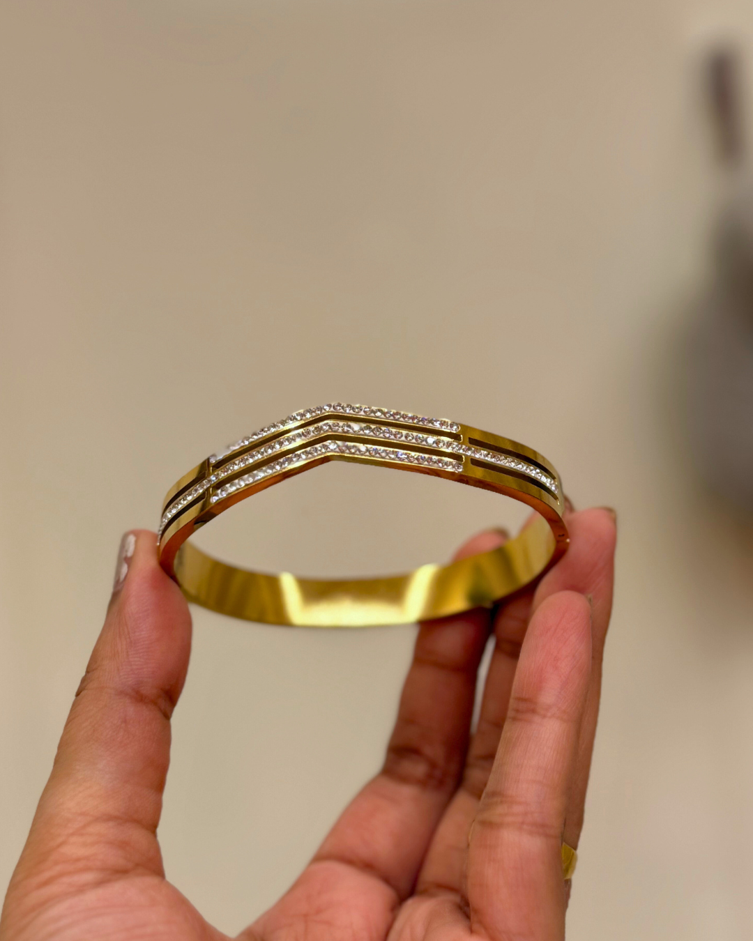Elevate your everyday style with the V-shaped kada bracelet, a sleek and timeless bracelet crafted with a high-quality, anti-tarnish finish. Designed for durability and elegance, this minimal kada adds a subtle glow to both casual and festive looks.